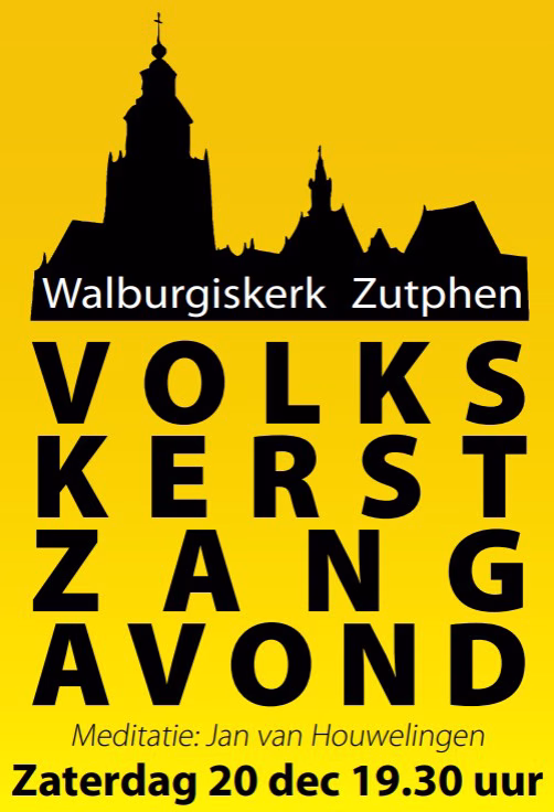 Op D.V. zaterdagavond 20 december a.s. organiseren een aantal Zutphense kerken de Volkskerstzang in de Walburgiskerk. De aanvang is 19:30 uur. De kerk is open vanaf 19:00 uur.